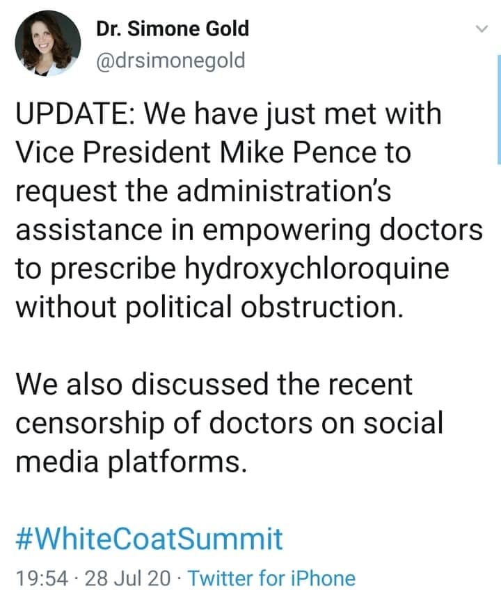 6/18/20 Dr. Simone Gold & Yale-trained Dr. Daniel Wohlgelernter on the demonization of HCQ https://www.youtube.com/watch?v=aaxKIivS79g
